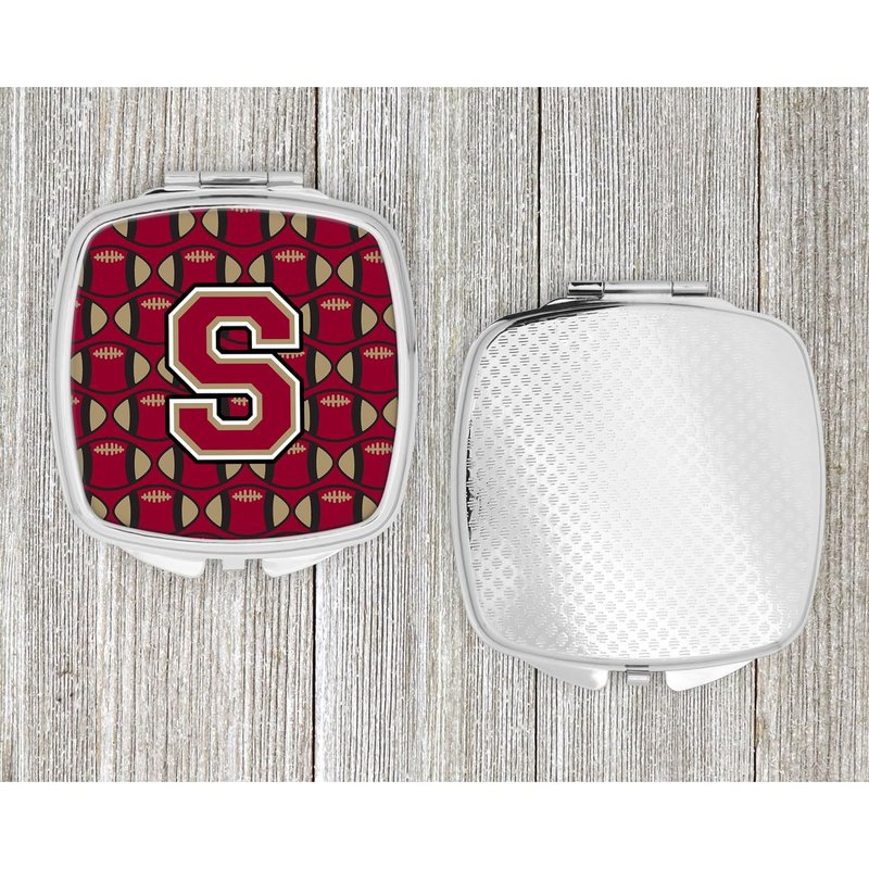 Caroline's Treasures CJ1078-SSCM Letter S Football Garnet and Gold Compact Mirror Decorative Travel Makeup Mirror for Women Girls Gifts Pocket Makeup Mirror Folding Handheld