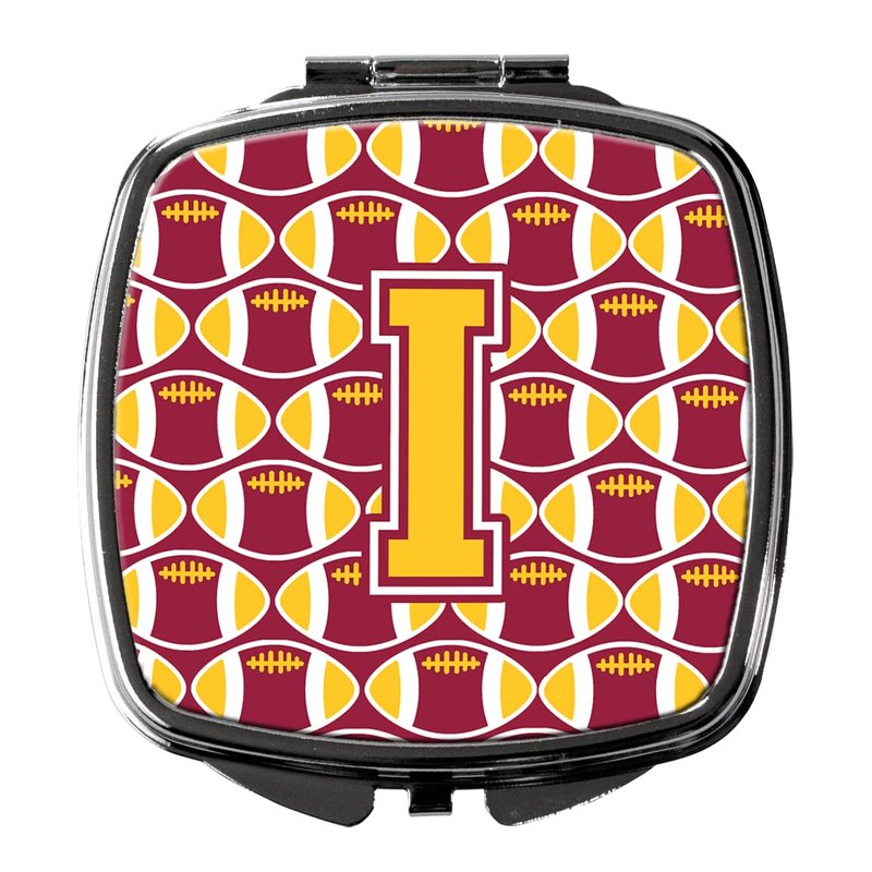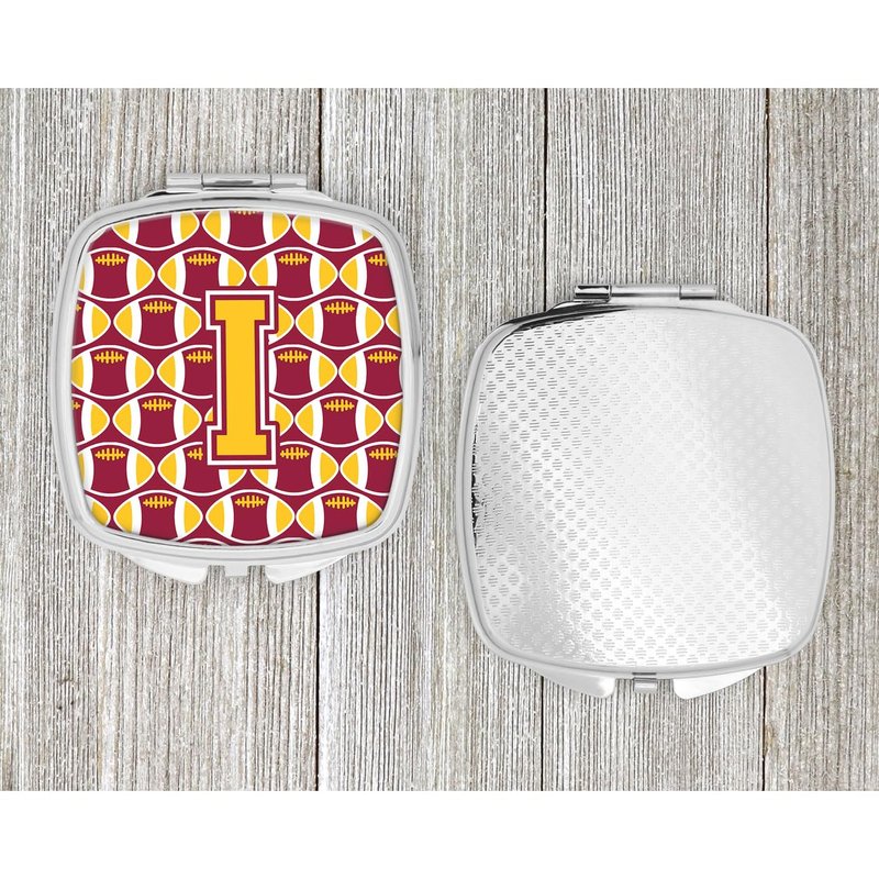 Caroline's Treasures CJ1081-ISCM Letter I Football Maroon and Gold Compact Mirror Decorative Travel Makeup Mirror for Women Girls Gifts Pocket Makeup Mirror Folding Handheld