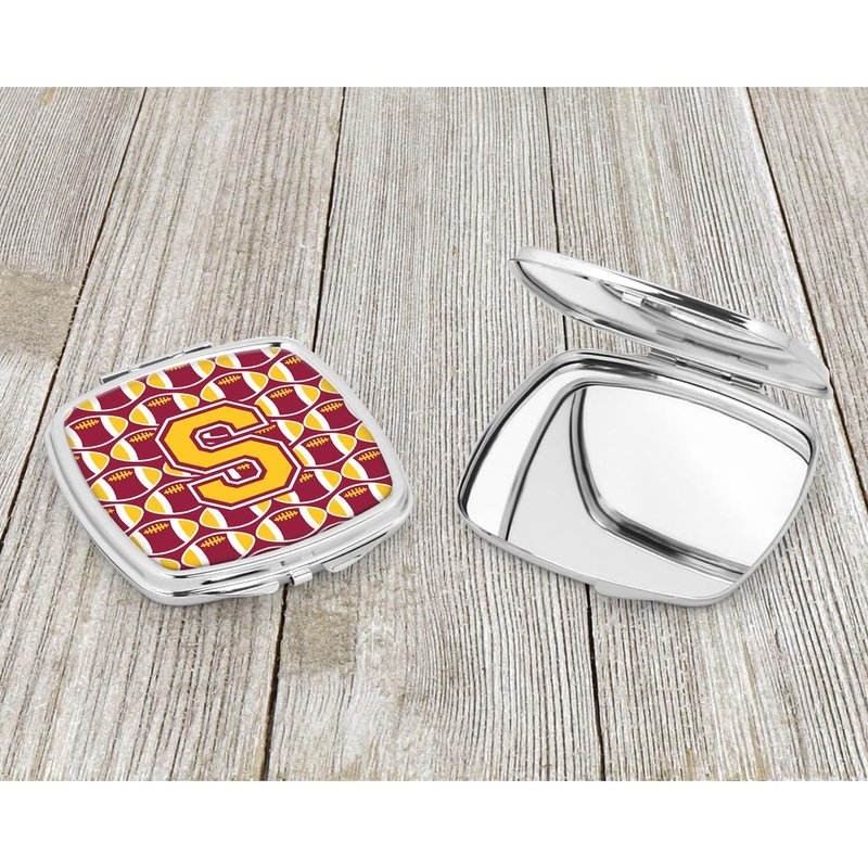 Caroline's Treasures CJ1081-SSCM Letter S Football Maroon and Gold Compact Mirror Decorative Travel Makeup Mirror for Women Girls Gifts Pocket Makeup Mirror Folding Handheld