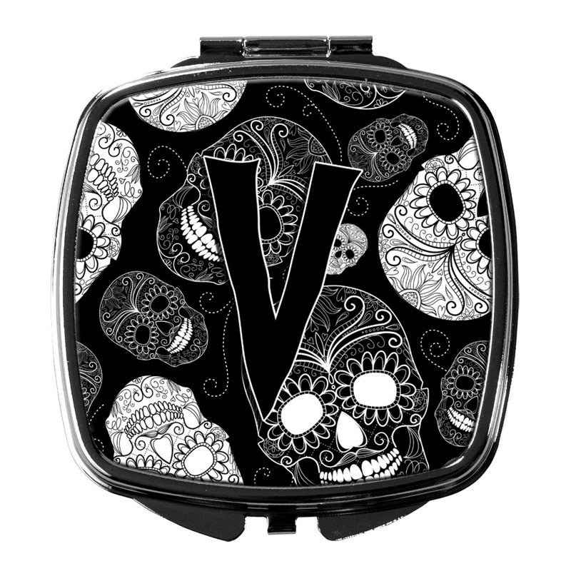 Caroline's Treasures CJ2008-VSCM Letter V Day of the Dead Skulls Black Compact Mirror Decorative Travel Makeup Mirror for Women Girls Gifts Pocket Makeup Mirror Folding Handheld