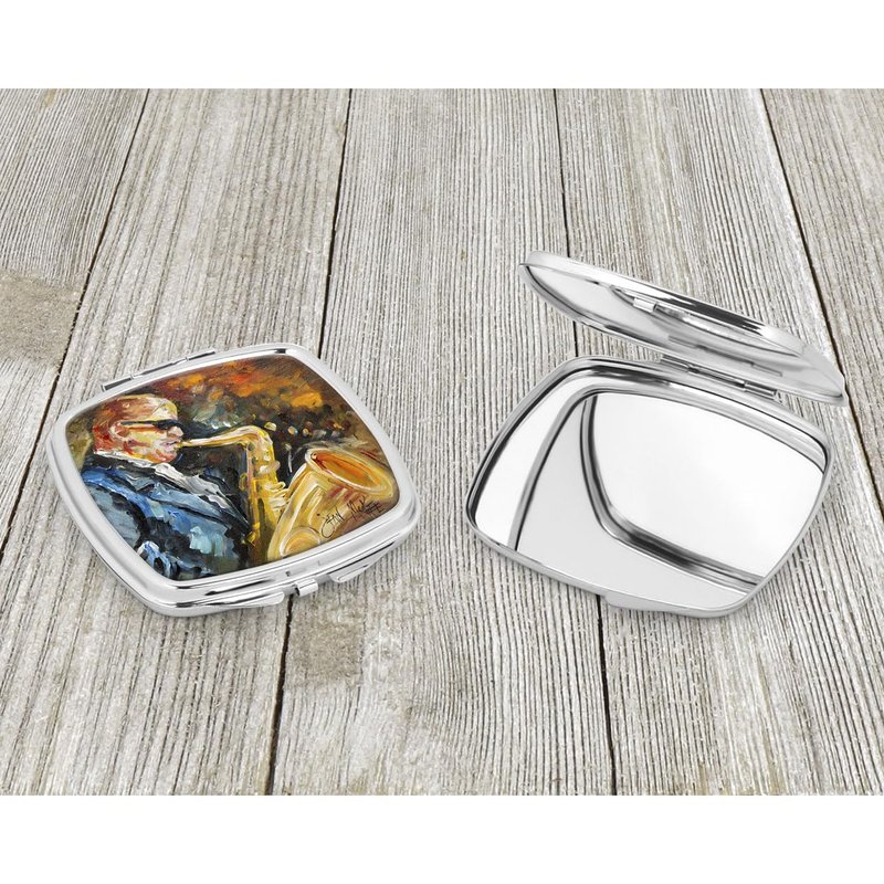 Caroline's Treasures JMK1277SCM Jazz Sazophone Compact Mirror Decorative Travel Makeup Mirror for Women Girls Gifts Pocket Makeup Mirror Folding Handheld