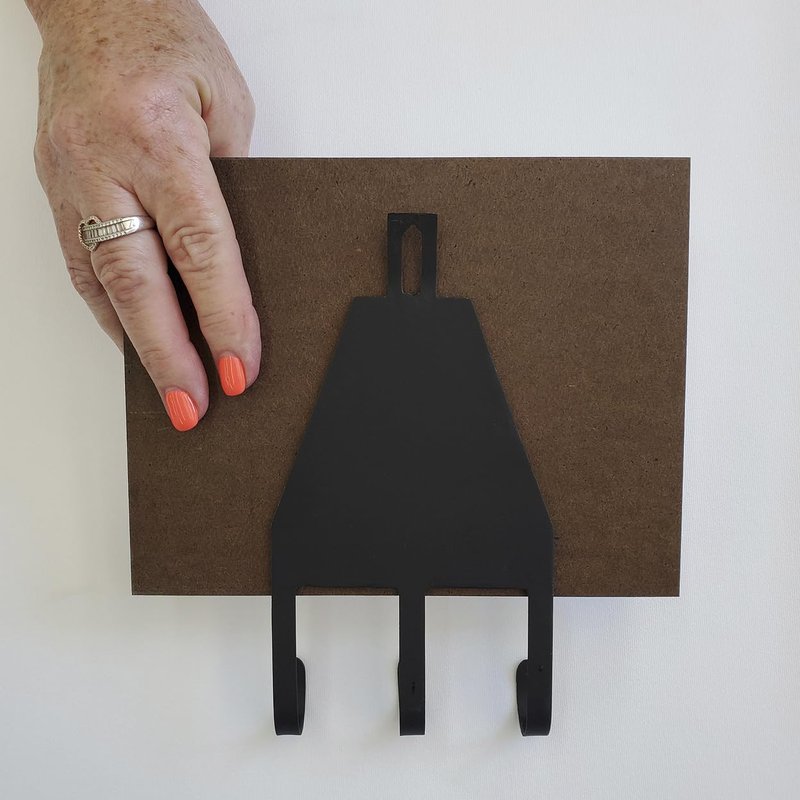 - A hanger is attached to the metal plate and is about 1.5 in. Long