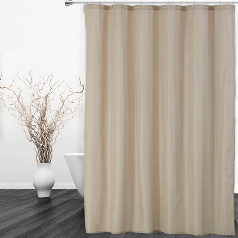 - PREMIUM FABRIC SHOWER CURTAIN OR LINER: Made of soft microfiber fabric with eco-friendly coated film, odorless, non-toxic and durable. The solid neutral tones of tan with a subtle shimmer are perfect for updating your bathroom decor with a classic look.