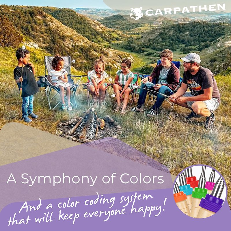 CARPATHEN Marshmallow Roasting Sticks - Set of 6 Rotating Smores Sticks - Extra Long Telescoping Marshmallow Sticks for Fire Pit, Campfire & Bonfire - Camping Accessories
