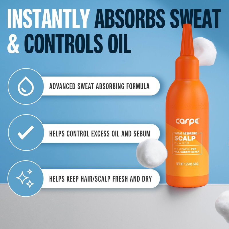 Carpe New Sweat Absorbing Scalp Powder - Non Aerosol Dry Shampoo for Women & Men - Residue Free Oily Hair Treatment - Use Between Washes