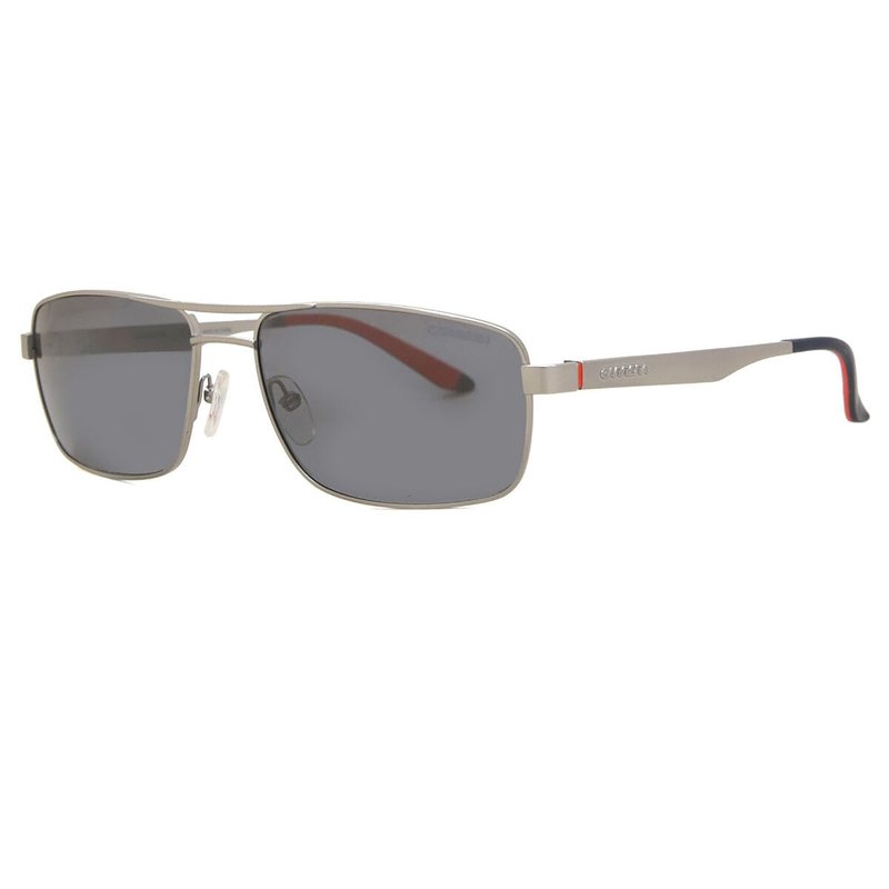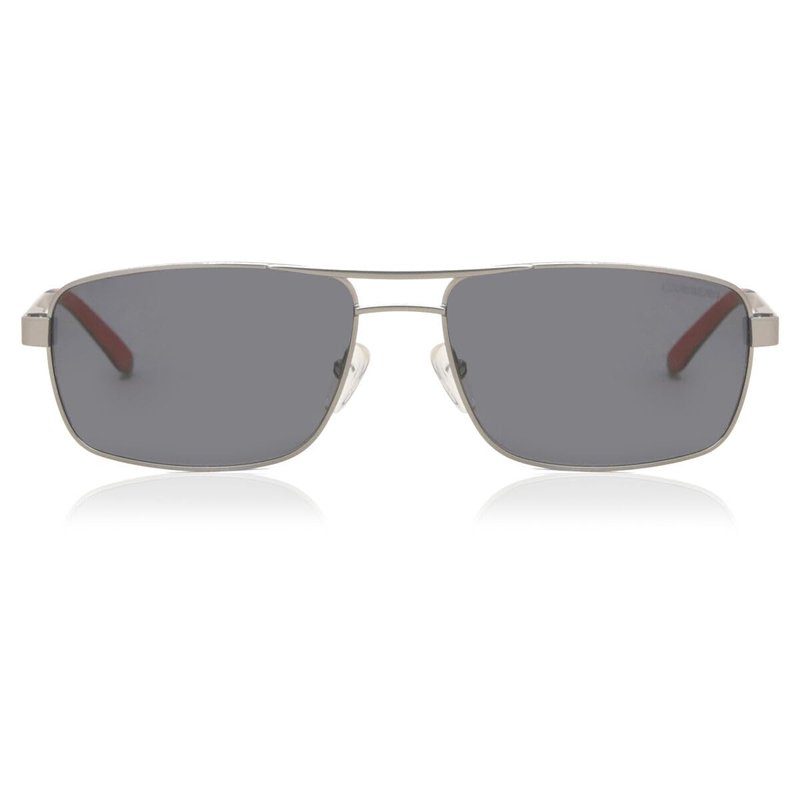 Carrera Sunglasses. Series number: CARRERA 8011/S. Color code: 0R81/DY. Shape: Rectangular. Lens Width: 58 mm. Lens Bridge: 16 mm. Arm Length: 140 mm. 100% UV protection. Polarized. Frame Material: Metal. Frame Color: Matte Ruthenium. Lenses Type: Gray Flash Silver. Rim Style: Full-Rim. UPC/EAN code: 762753293282. Carrera Gray Flash Silver Rectangular Unisex Sunglasses CARRERA 8011/S 0R81/DY 58.