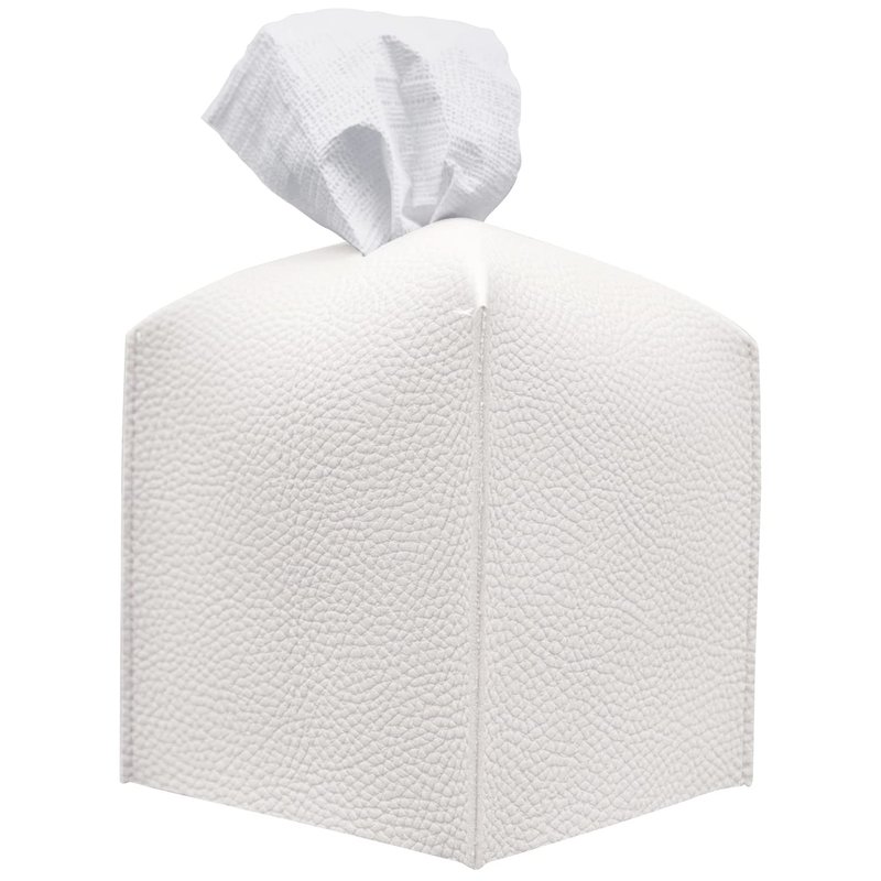 Carrotez Tissue Box Cover, Refined Modern PU Leather Square Holder - Decorative Holder/Organizer for Bathroom Vanity Countertop, Night Stands, Office Desk & Car 5"X5"X5" White