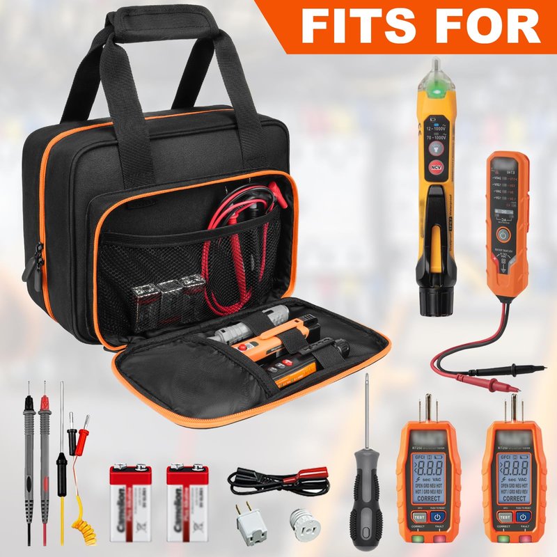 - Instant Front-Access Organization: Dedicated front pocket features 3 elastic slots for screwdrivers/voltage testers and a gridded sleeve for paperwork. Dual zippers enable full-case opening for instant access in confined spaces like electrical panels – perfect for GFCI tester maintenance