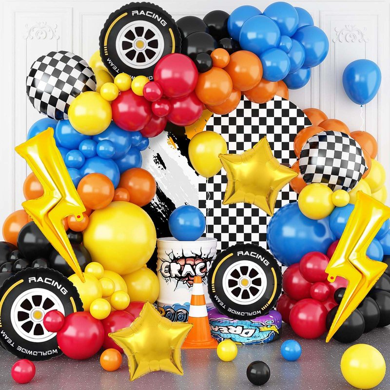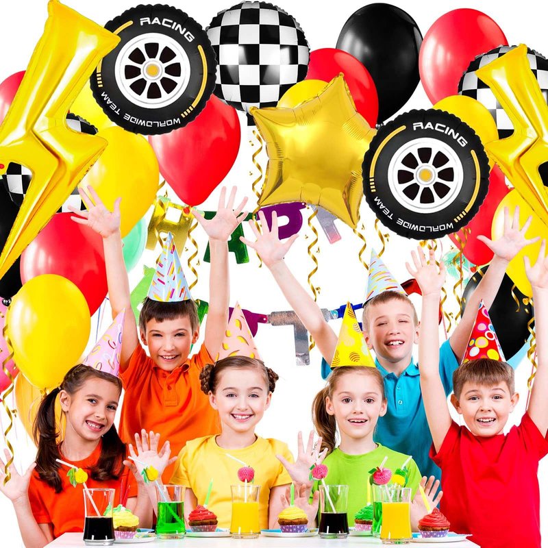 - Race Car Party Decorations: 10 PCS in total, 1 large number balloon, 2 wheel balloons, 2 lightning balloons, 2 star balloons, 2 round balloons, 1 ribbon.
