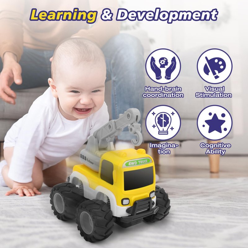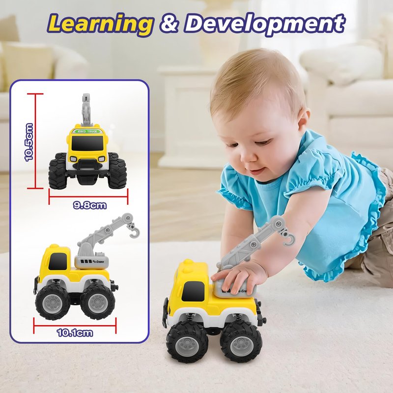 Cars Toy for 18m+ Years Old - Baby Toy Cars for Toddlers Push and Go Friction Powered Construction Truck Toys Plastic Action Vehicle Crane Toy with Playmat Storage Bag for Kids Boys Birthday Gifts