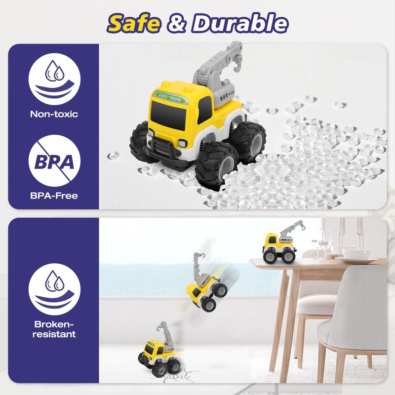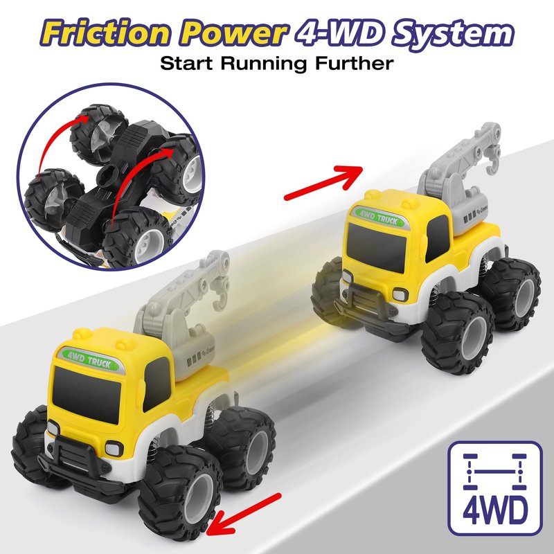 - Push & Go System Using Friction: These are friction powered, so you don't have to pull back. No batteries needed. You just lightly push them and it will go so far. Friction power (push and go) feels well-built and last for a long time without wearing out