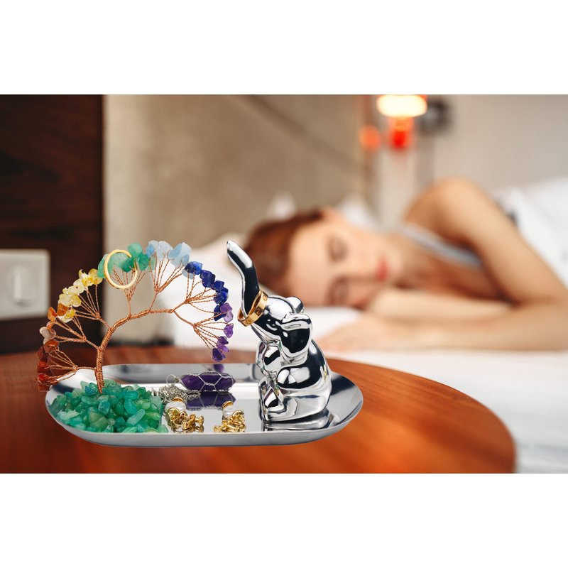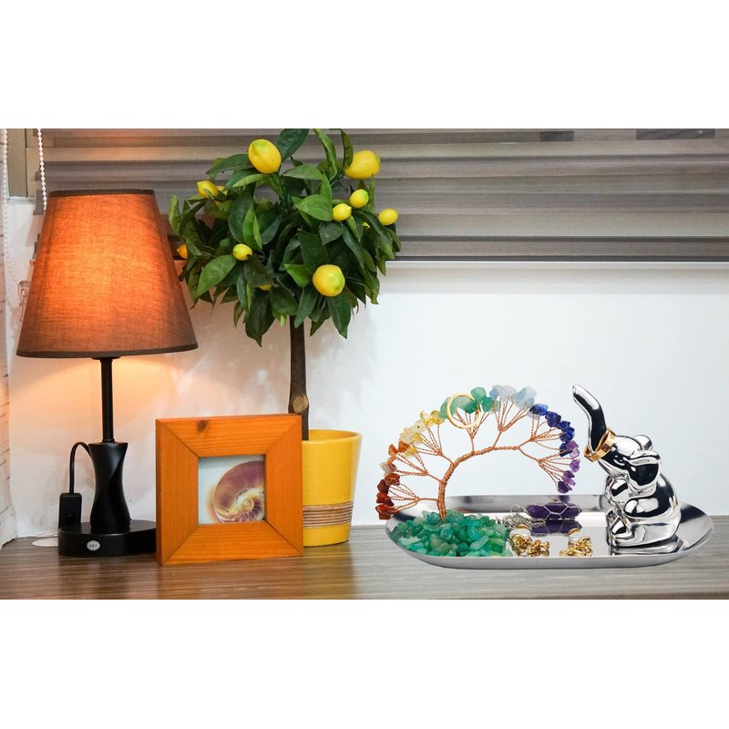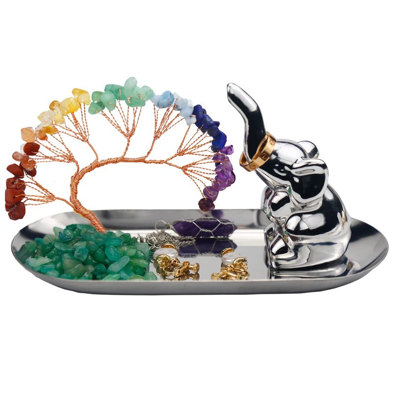 - 【Elephant Gifts for Women】You are about to get a beautiful chakra crystal tree lucky elephant jewelry tray. The package contains: 1 chakra crystal tree tray, 1 lucky elephant, 1 double-sided rubber pad