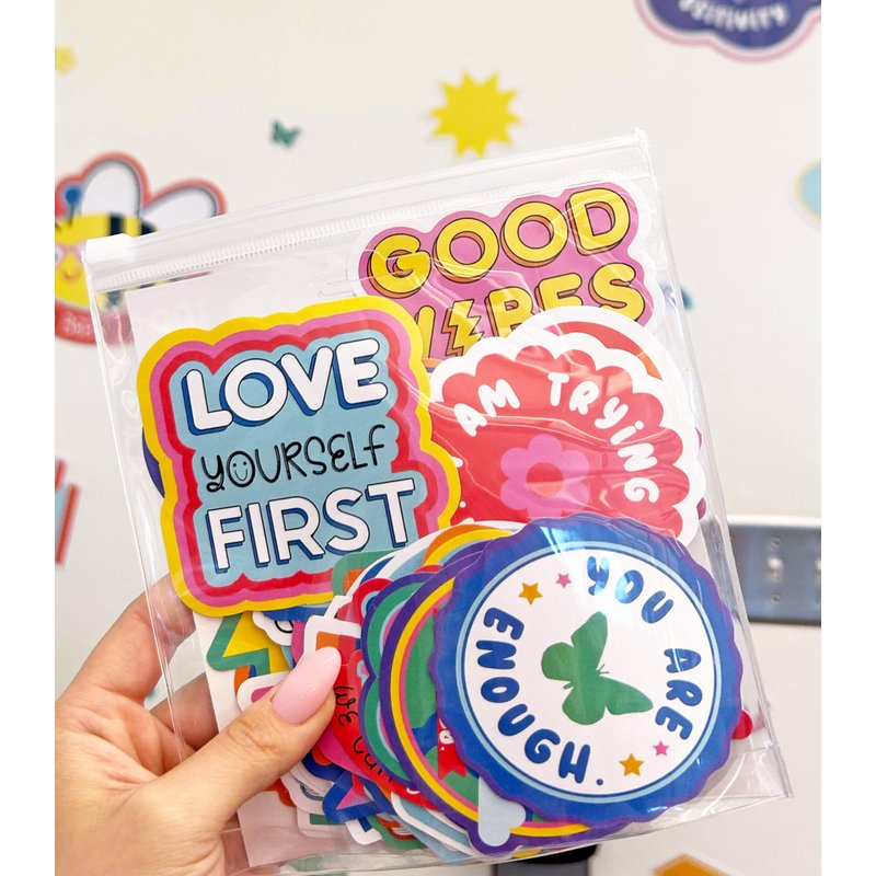 - What’s Included: The 100 pack of waterproof, removable vinyl stickers contain 100 3” x 3” unique stickers, which each features a cheerful design or an encouraging saying to spread positivity.