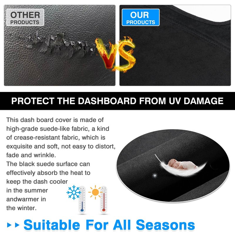 - Upgraded Suede Material -- The dash mat is made of 4-layer thickened suede fabric【much durable than felt material】, a kind of light luxury material that is soft, comfortable, odorless and don't crumple easily with low glare finish. Much better than outdated flannal and felt material.