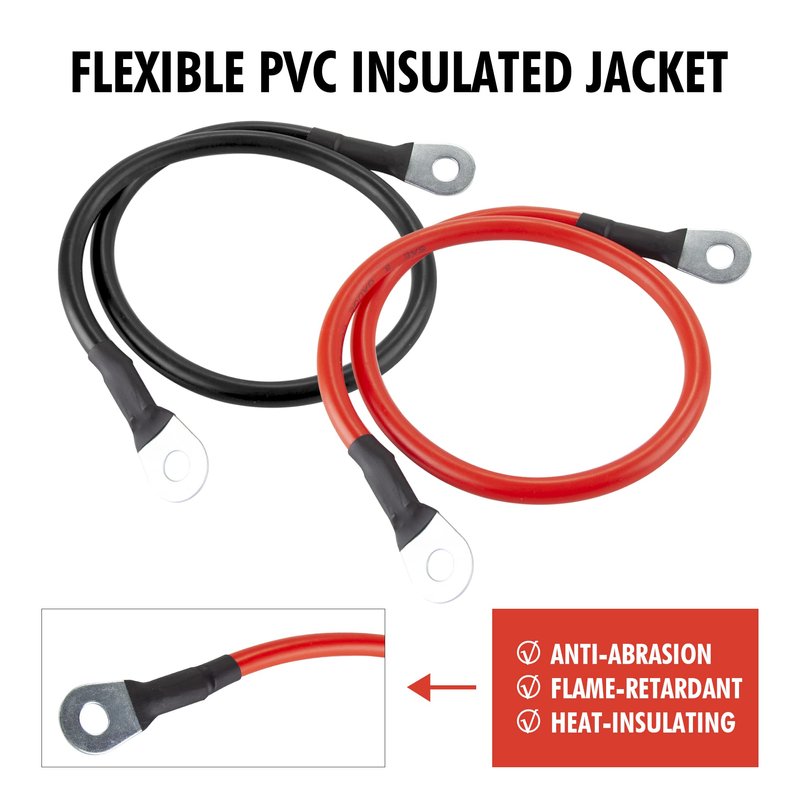- Flexible PVC insulation of battery cables resists abrasion, waterproof and moisture proof, flame retardant and heat insulation