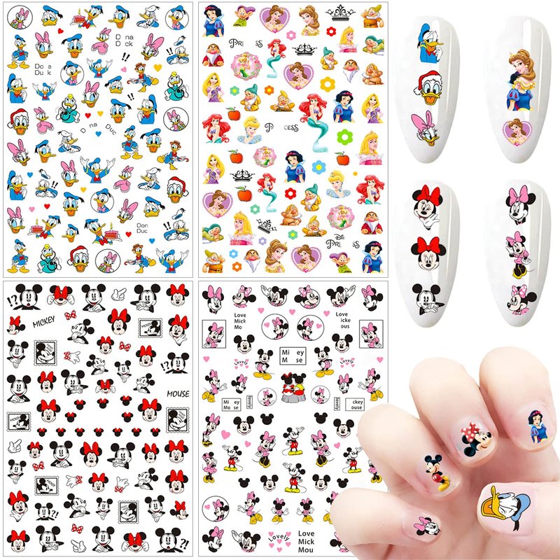 - Quantity:You will get 4 sheets Cartoon nail art stickers, Super cute cartoon and easy to use! can be used to decorate your own nail art, nail design, highlights and more.