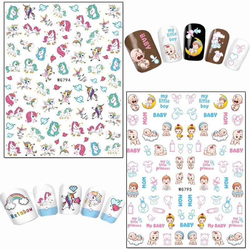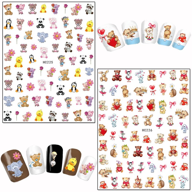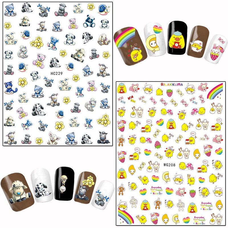- 【Quantity】8 Sheets cute animal nail art adhesive sticker, each paper measure 4.1 x 3.1 inches(10.3 x 8 cm). Contains a variety cartoon patterns: Unicorn, Bear, Elephant, Bunny, Chicken, Duck, Raccoon, Mouse, Hedgehog, Dog, Cat, Hippo, Sheep, Flowers, Little Baby etc.