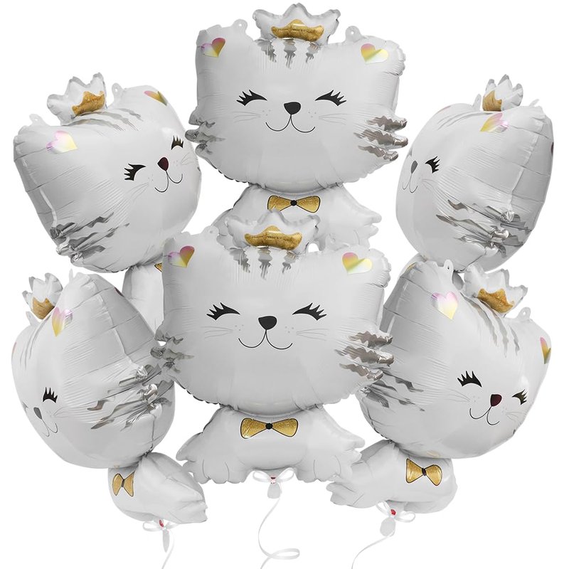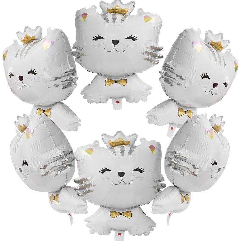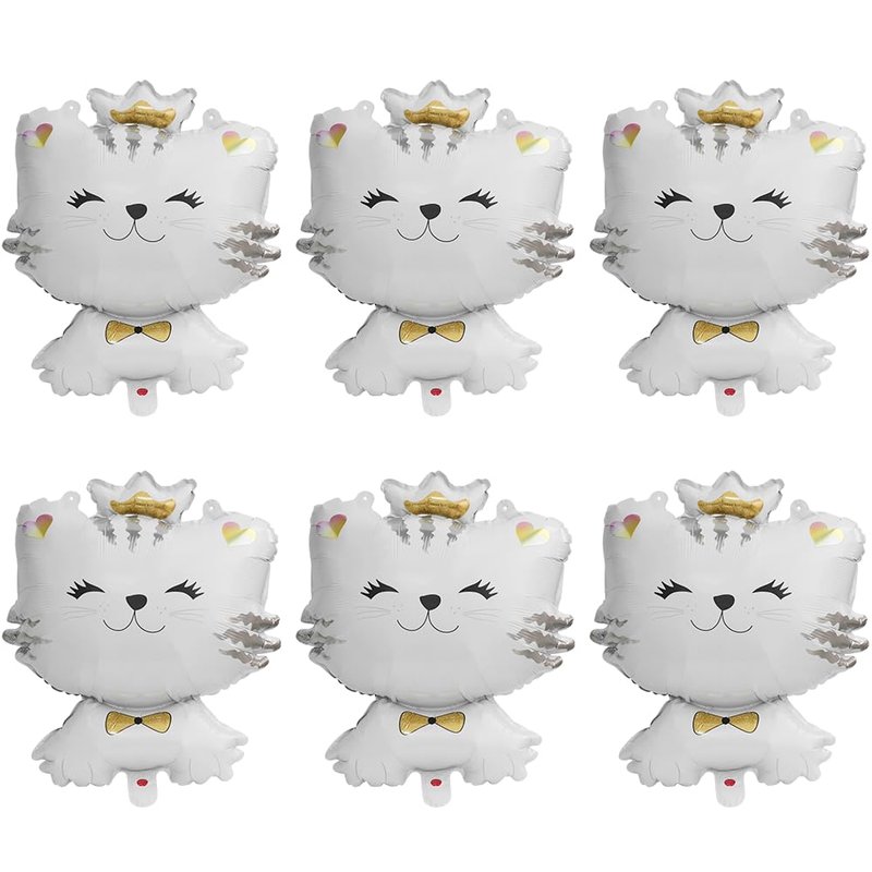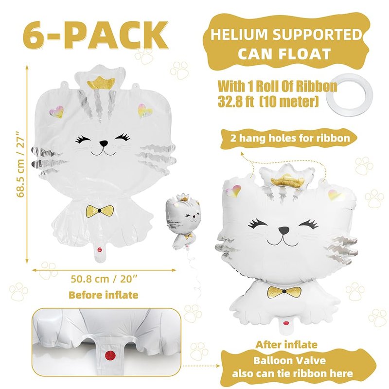 - 6 PACK KITTY CAT PARTY SUPPLIES★ Our kitty cat balloons kit, pack of 6, white cat themed balloons design are assorted with 6 large 27 inch size cat mylar foil balloons (realistic animal white kitty balloons), size is around 27'' (68.5 cm) tall * 20'' (50.8 cm) long, double side printed & more thicken than other.