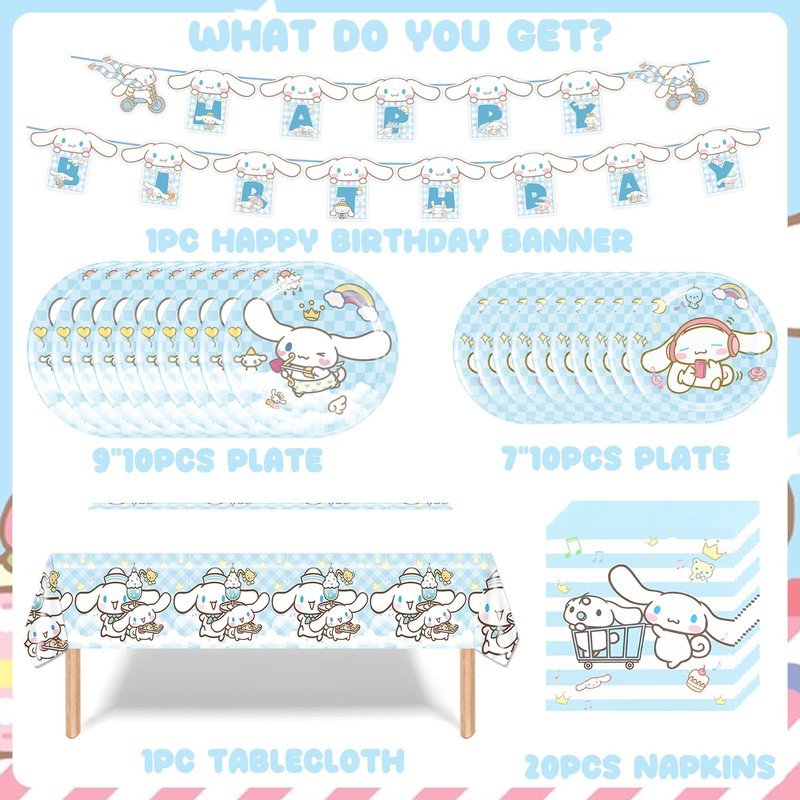 - 【Package Details】: include 1pcs birthday banner, 10pcs 7in plates, 10pcs 9in plates, 20 napkins, 1pcs tablecloth.