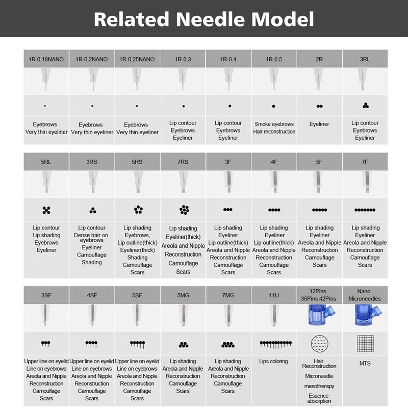- 【Material】316 medical stainless steel with pre-sterile by E.O. Gas, transparent plastic shell. This cartridge needles can be used to eyebrow, eyeliner, lip contour.
