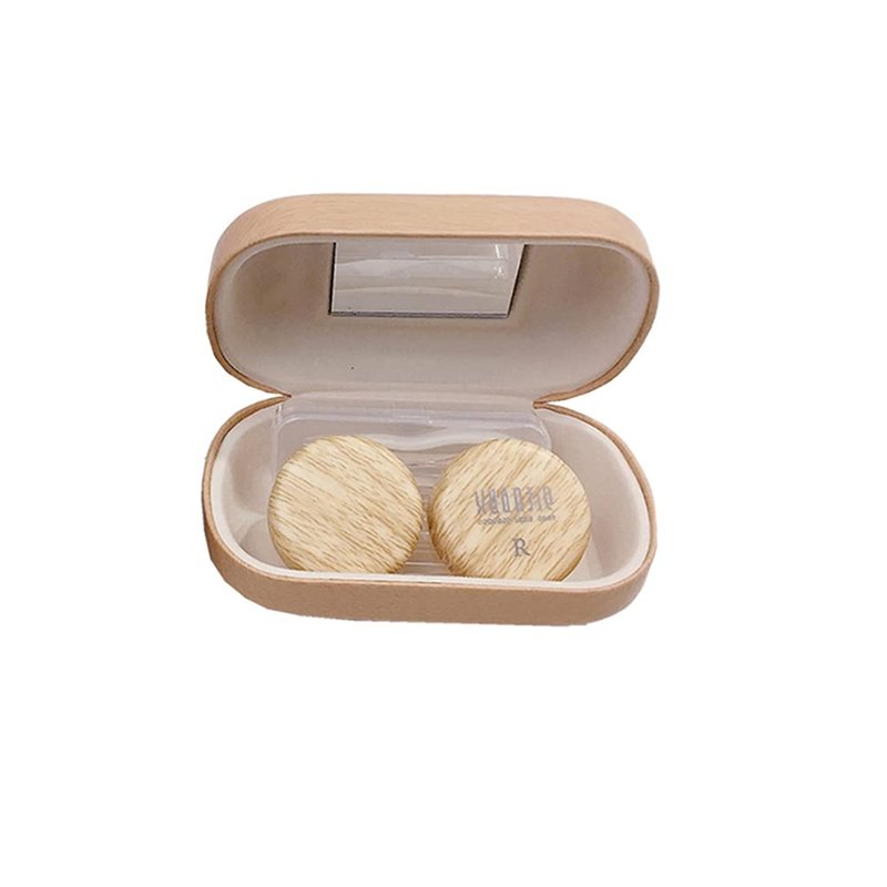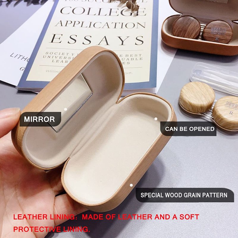 Caruncoo CARUNCOO Wood Grain Contact Lens Case Compact Eye Contact Case for Travelling Portable Contact Box with Mirror Rectangle,Cute Colorful Especially Fresh Brown 4 Piece Set