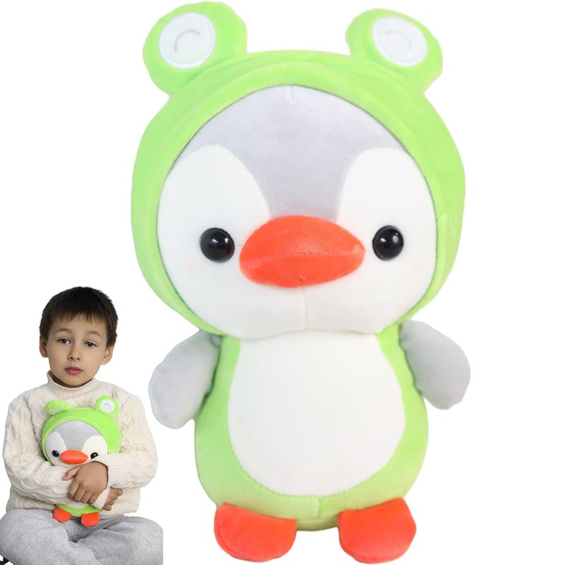 - THE STUFFED ANIMAL PENGUIN COMES WITH FROG COSTUME DESIGN YOU WILL LOVE - Have an exciting imaginary play with your kids with the Frog Penguin plush toy. Adorable plush Penguin in frog outfit will surely bring a smile to your lovers who like Penguins, and cute animal like frog. A soul partner toys for lovers and kids. Bring the cute stuffed Penguin animals for kids and lovers to your home decor.
