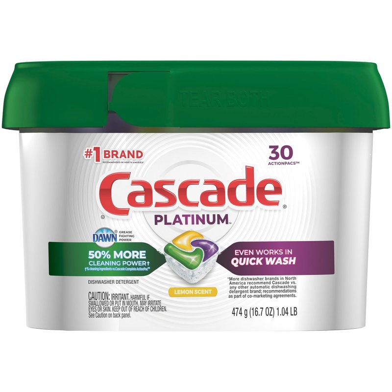 Cascade Platinum Actionpacs Dishwasher Detergent, Lemon Scent, 30 Count