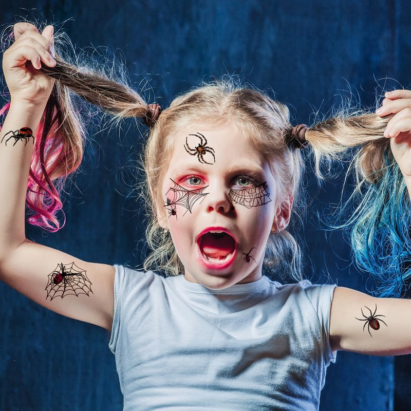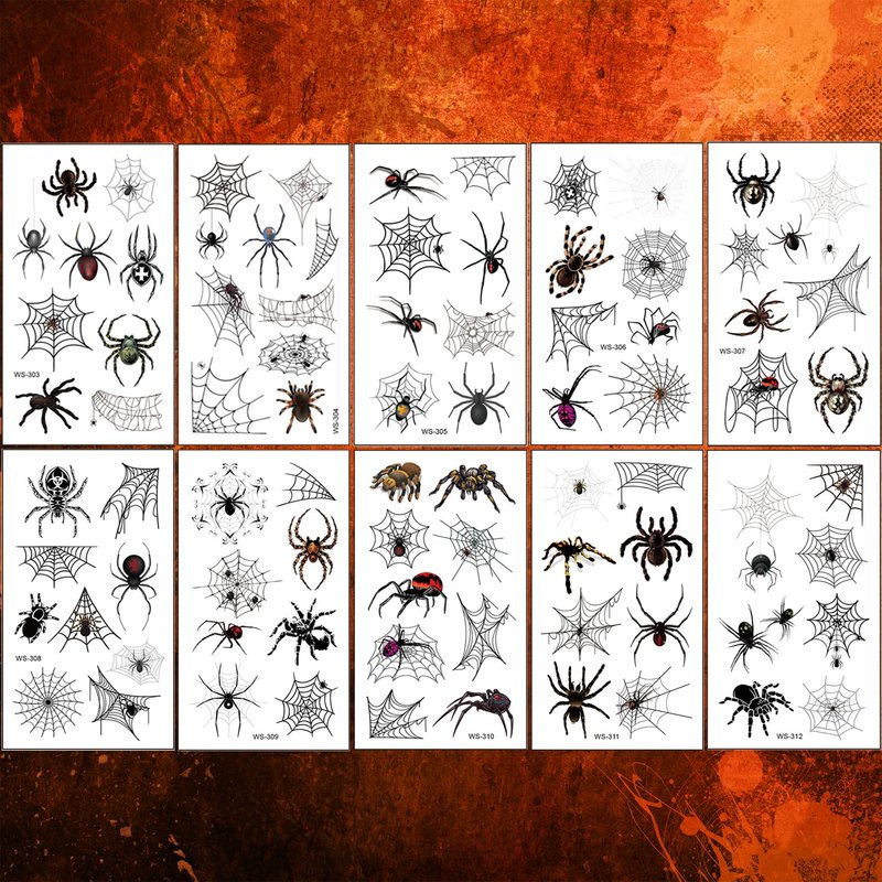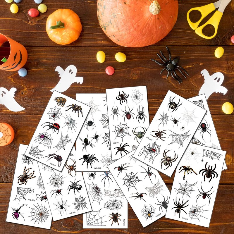- HALLOWEEN TEMPORARY TATTOOS--10 sheets halloween tattoos for kids/adults in various spiders unique fun and spooky designs.