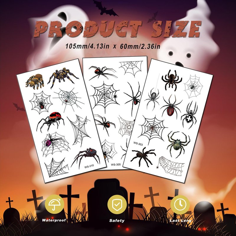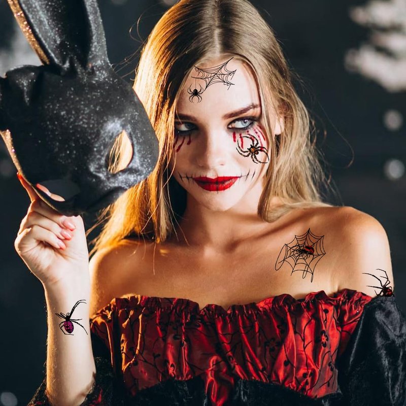 - WATERPROOF AND LAST LONG--the spider web halloween fake tattoo with the latest waterproof technology and eco-friendly inks, the temporary tattoo is not irritating to the skin, is safe for children's skin,can be used at pool parties and in all kinds of environments where water is present.