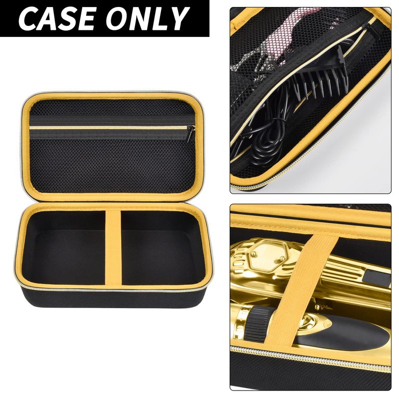Case Compatible with Hair Clipper Barber, Trimmer Travel Storage Organizer for T Finisher Liner, Comb Cutting Guide, Clipper Blade Oil, Cleaning Brush and Other Grooming Kit - Black Case+Gold Zipper