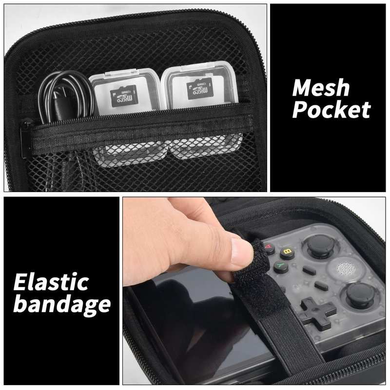 3. Mesh pockets keep for Anbernic RG353V handheld video games cards, charging cables, adapters and accessories in one place.