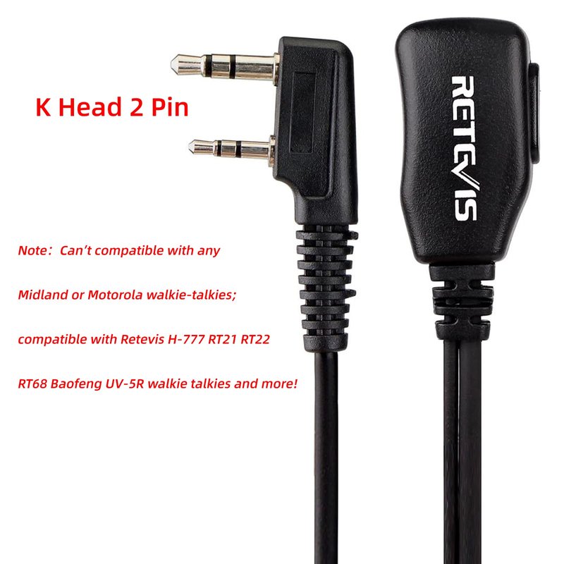 - Kenwood 2 pin; compatible with Retevis H-777 RT21 RT22 RT68 RT18 RT19 RT27 RT-5R Baofeng UV-5R series BF-F8HP BF-888S Arcshell AR-5 Kenwood two way radio and more