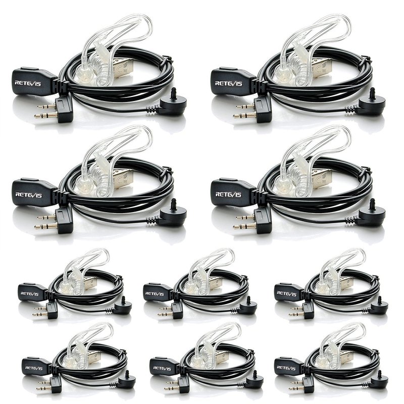 Case of 10, Retevis Walkie Talkies Earpiece with Mic 2 Pin Acoustic Tube Headset Compatible with Baofeng UV-5R Retevis H-777 RT21 RT22 Arcshell AR-5 Two Way Radio