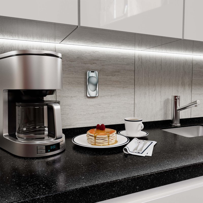 Grippy is a MagSafe compatible phone mount designed for convenience. Its suction cups securely fasten to any clean, flat surface like mirrors and windows. With the MagSafe magnet, your phone effortlessly attaches to Grippy, simplifying photo and video shooting or browsing, all hands-free.