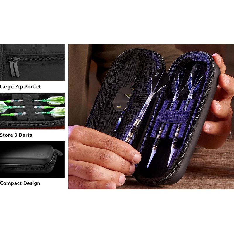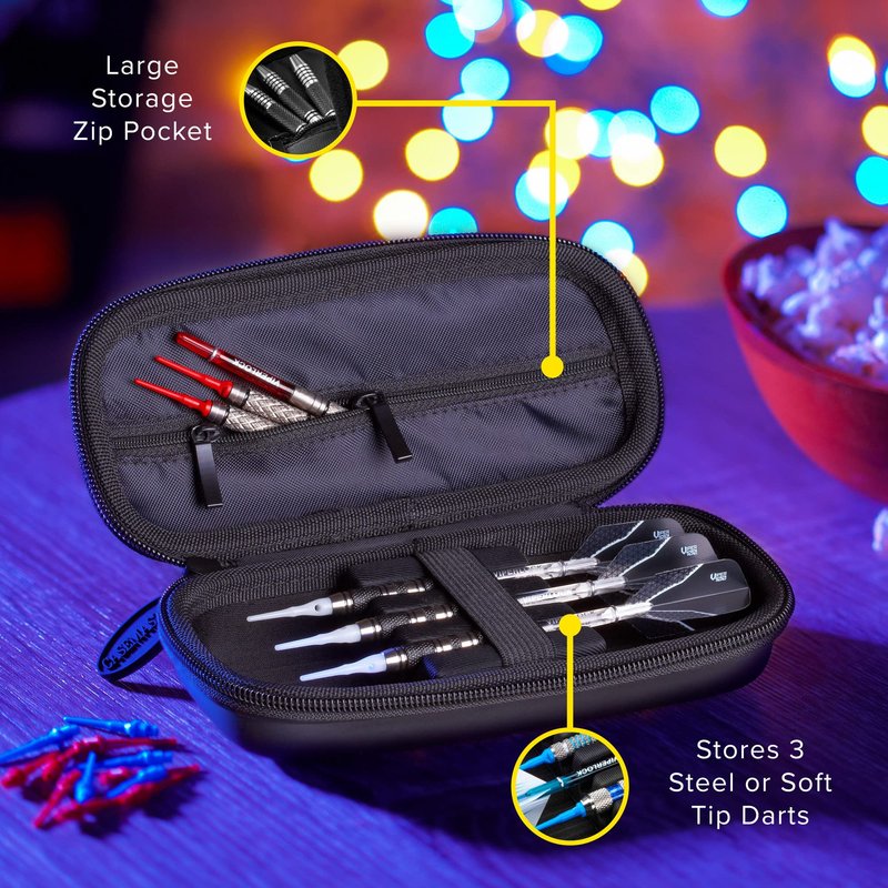 Casemaster Warden 3 Dart Case, Holds Extra Accessories, Tips, Shafts and Flights, Compatible with Steel Tip and Soft Tip Darts, Impact & Water Resistant TacTech Shell, Black Zipper