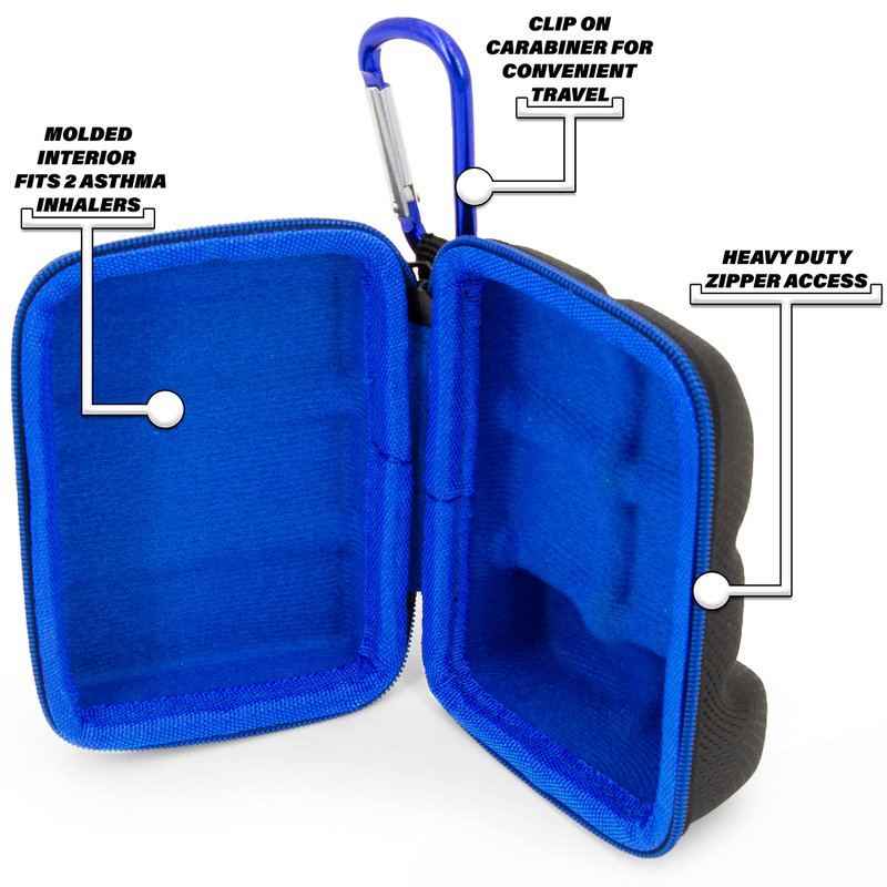 - Casematix protective asthma inhaler holder for travel. Dual slots fit up to two inhalers in one compact solution. Durable design protects from drops, impacts and spills. Includes clip on carabiner and removable lanyard - INCLUDES CASE ONLY