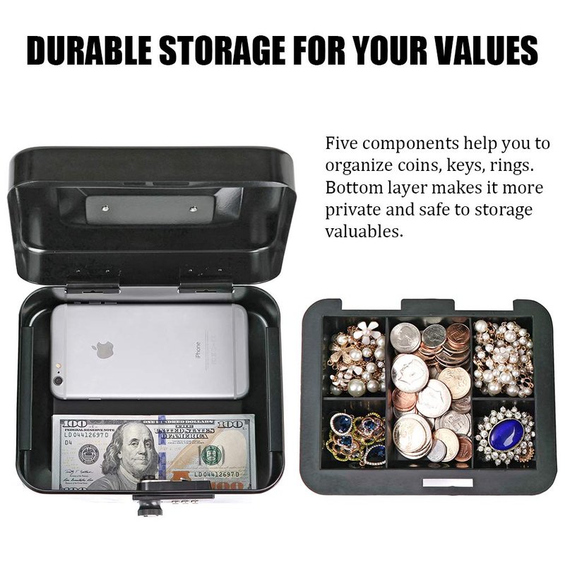 - Removable Money Tray: Cash box features a removable money tray sturdy enough to organize bills, coins, receipts, medication, also your jewelry