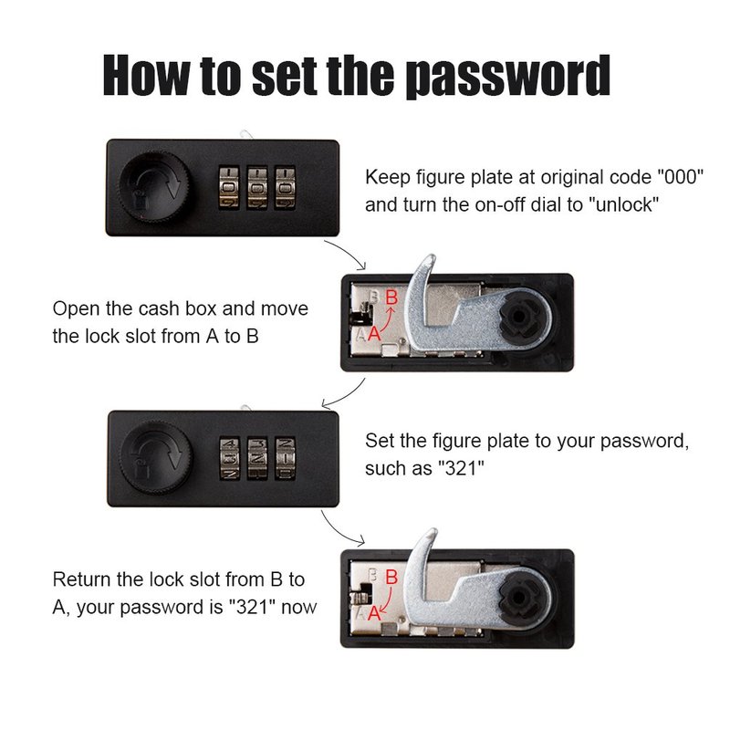 - Flexible Combination Lock: Money box is protected by 3-numbercombination lock. Which can be easily changed only by yourself