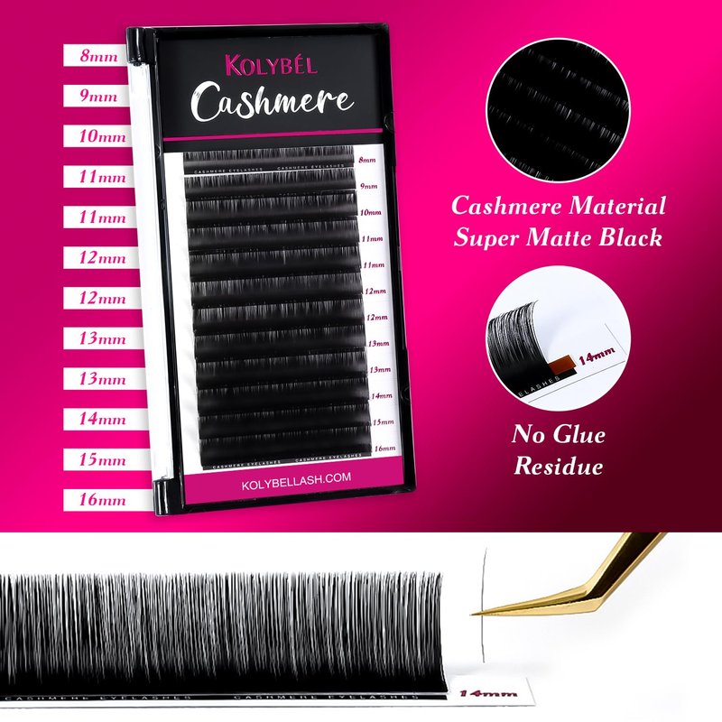 - Size Specifications:Cashmere Premium Eyelash Extension has 12 Rows/ Tray. KOLYBEL provide more size with you: 0.03/0.05/0.07 Thickness, C/CC/D Curl, 8-16mm Mixed Length.