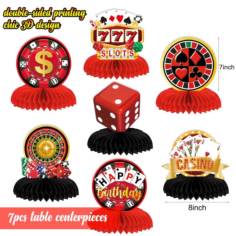 Casino Theme Party Decorations, Casino Birthday Party Decorations Supplies, Las Vegas Party Decorations, Poker Happy Birthday Backdrop, Casino Honeycomb Centerpieces, Casino Balloons Garland