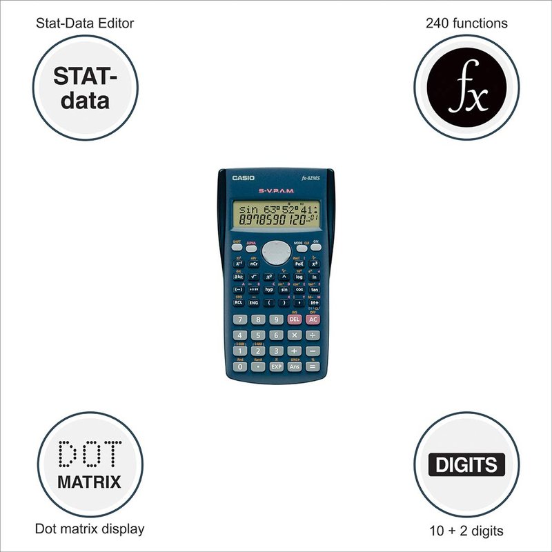 Casio 10-Digits 240 Functions Non-Programmable Scientific Calculator FX82MS