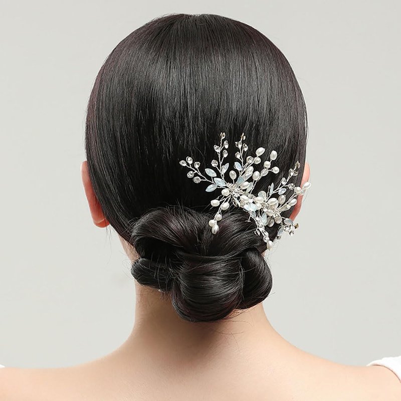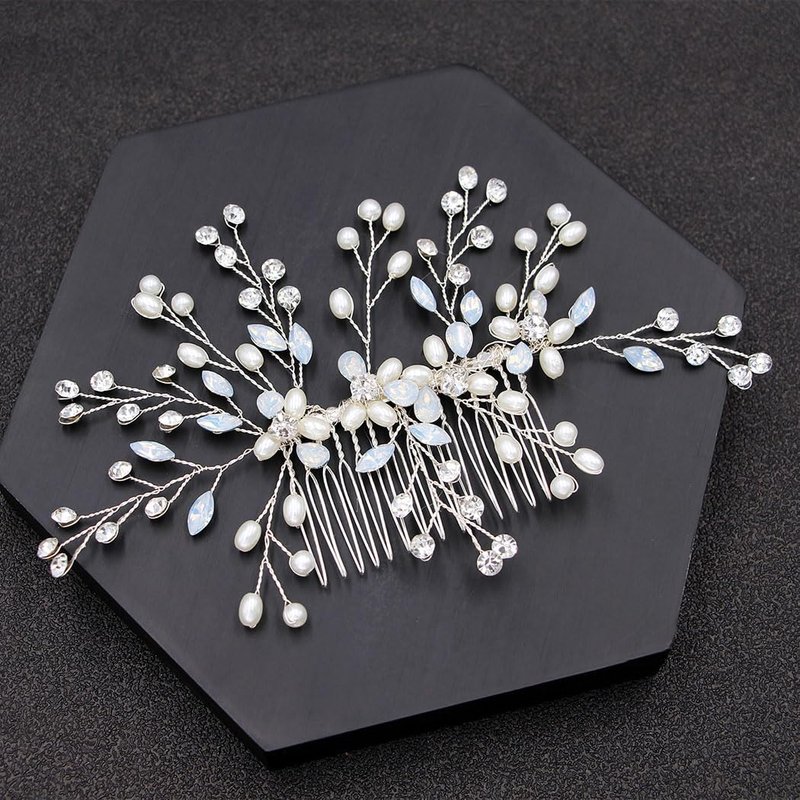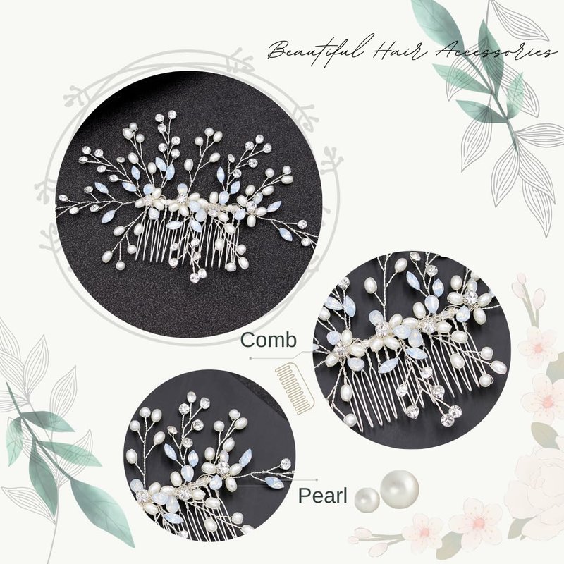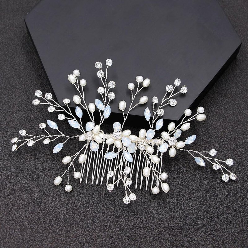 CASOLVX Crystal Wedding Hair Comb Pearl Crystal Hair Piece Bride Side Comb Hair Accessories for Women and Bride Handmade Jewelry(Silver)