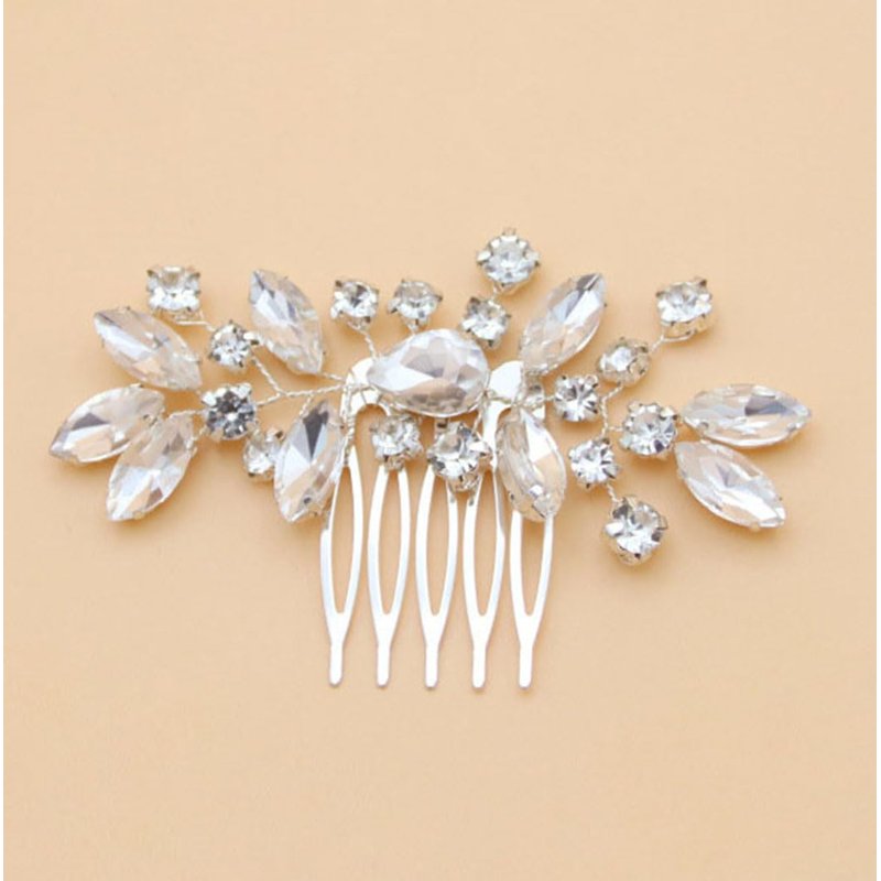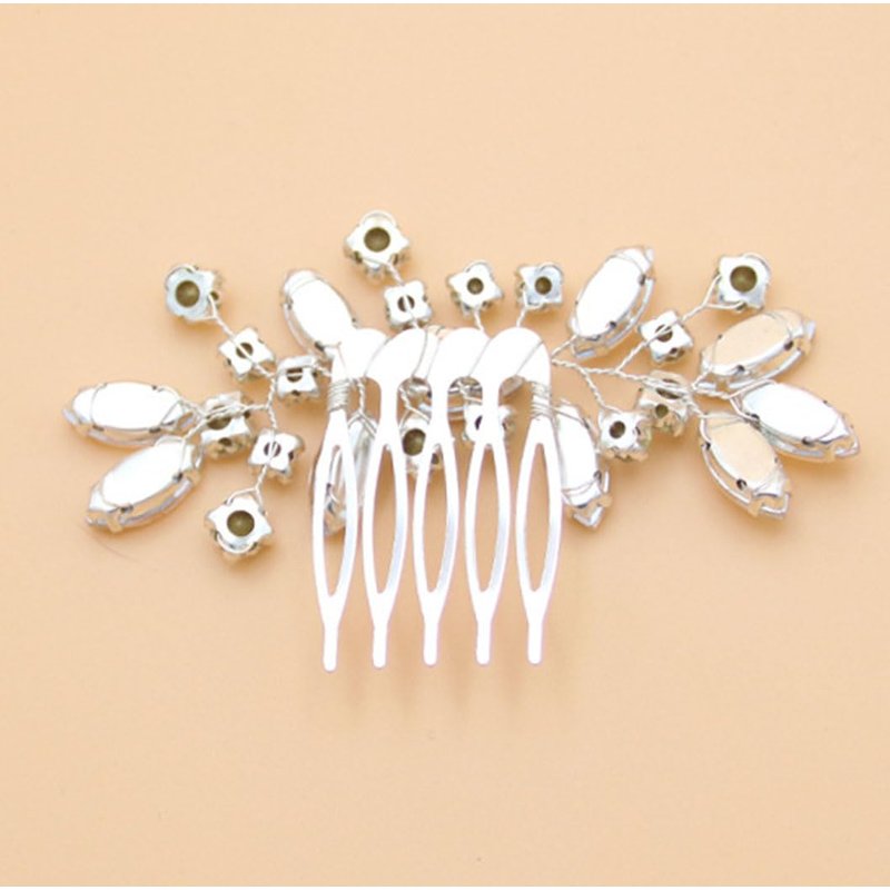 CASOLVX Handmade Silver crystal hair comb JEWELRY DETAILS: