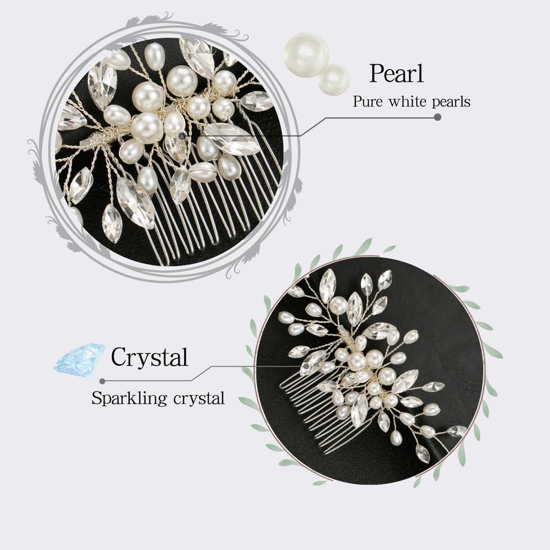 CASOLVX Handmade Pearl Crystal Hair Comb JEWELRY DETAILS: