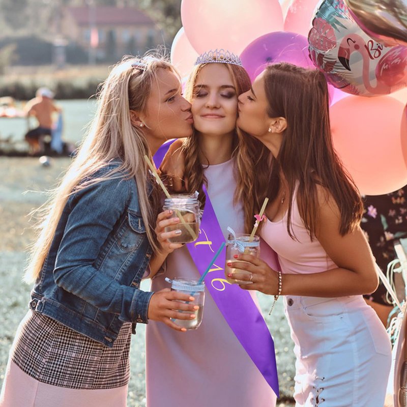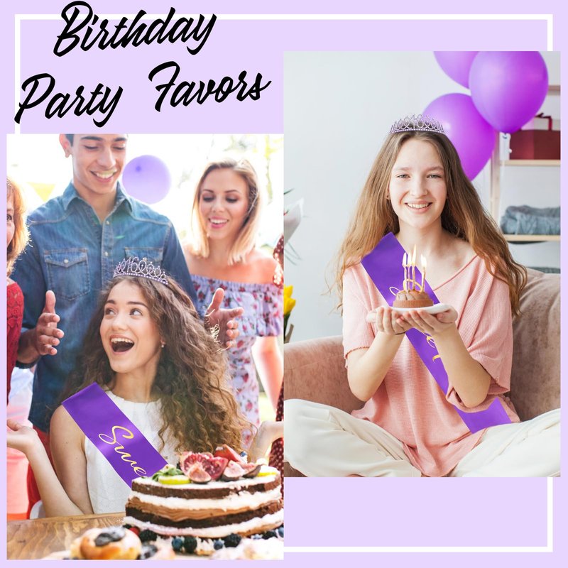 Casoty 16th Birthday Sash and Tiara for Girls, Sweet 16 Party Decorations, Purple Sweet 16 Sash and Tiara Set for Girls, 16 Birthday Decorations for Girls