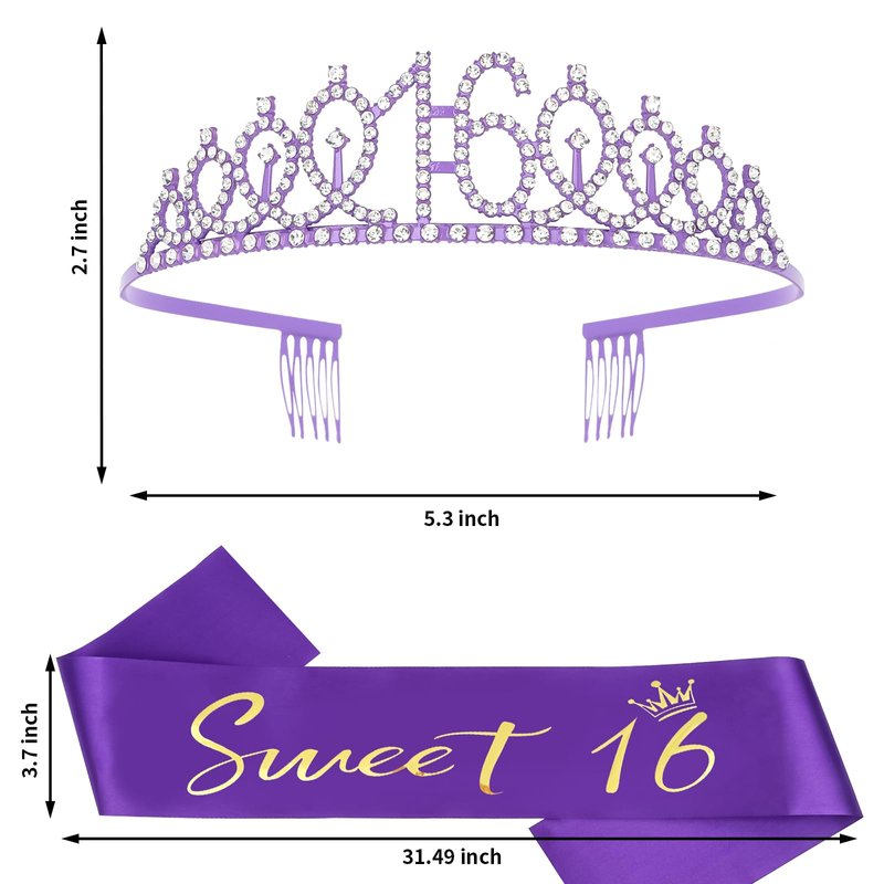 - 【Great 16th Birthday Gifts】: The birthday kit includes "sweet 16 "sash, 16th rhinestone tiara and pearl pin. It’s a great birthday gift for you. You will be like a queen in your birthday celebration.