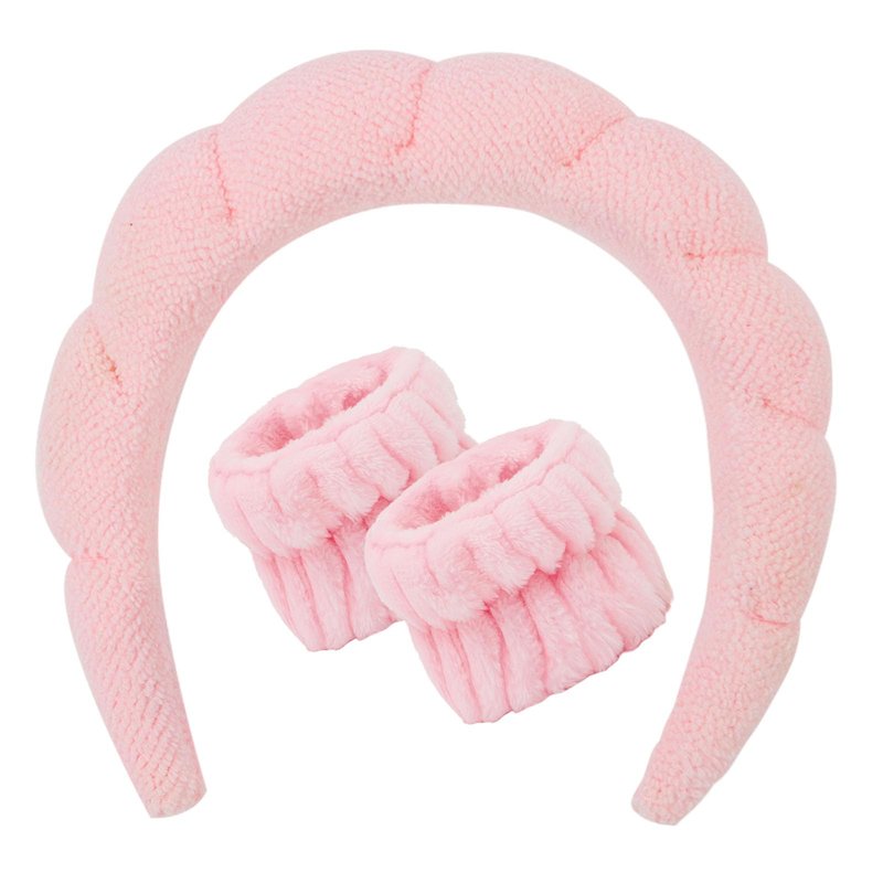 Casoty 3 Pcs Terry Cloth Headband Face Wash Headband and Wristband Set, Skin Care Headbands, Hair Band Spa Headband and Wristband Set, Makeup Headband for Face Washing Shower Yoga