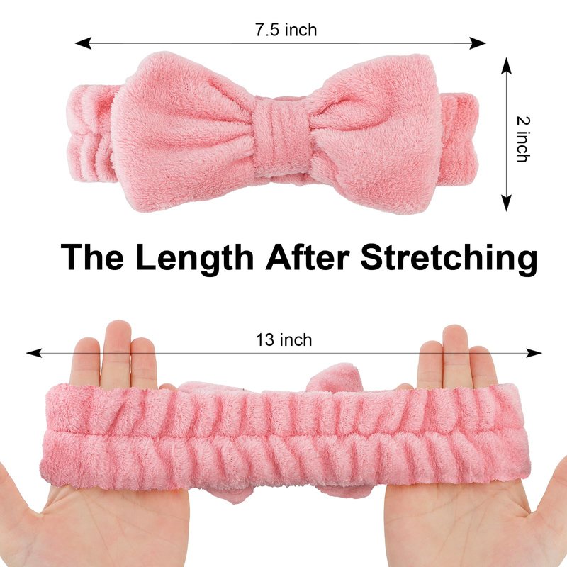 - One Size Fits All:The spa headband can be used for adults as well as for children.The soft texture does not harm to children's skin.The size is about 7.5 inch length and 2 inches width, can be stretched to 13 inch, easily to fit your head size.