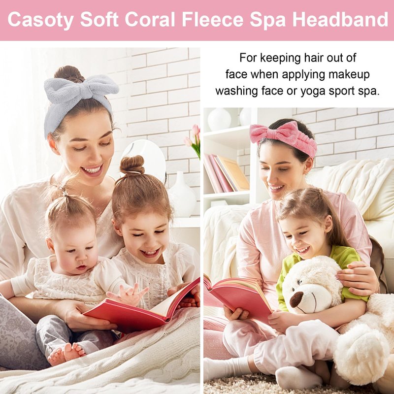 Casoty 6 Pcs Make Up Headbands, Bow Hair Band, Soft Coral Fleece Facial Headband, Spa Headband for Washing Face, Towel Headband for Face Washing Shower Skin Care Yoga