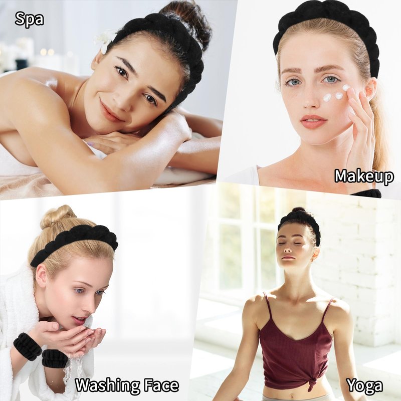 - 【High-Quality Material 】: The puffy spa headbands are made of terry cloth material to keep hair from getting wet.The Face Wash Wristbands are made of soft coral fleece material, which is fluffy, soft and comfortable to wear.